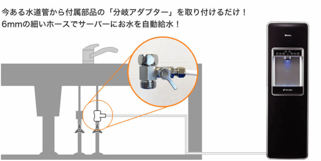 ボトル交換や水のストック管理が不要で、常に安定して水を供給できるのがメリット。